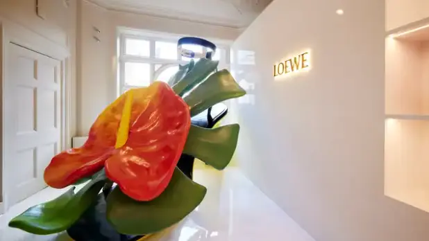 Now, the craze has hit London. Walk into Matches Fashion’s Mayfair townhouse shop, 5 Carlos Place, and enter a Loewe anthurium wonderland. For a takeover running from today until Thursday, May 13, customers will find a vast rendition of the anthurium and leaf stiletto that walked the collection, alongside bunches-upon-bunches of the flowers, and a selection of similarly adorned clothes, bags, and shoes to purchase.